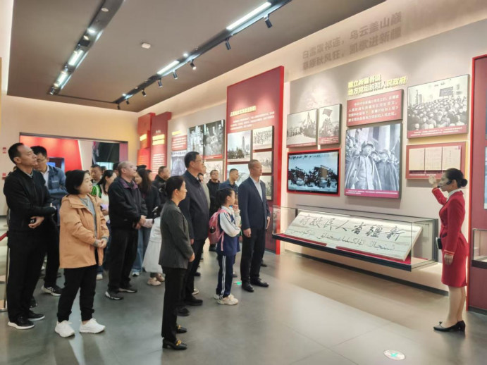 展览以“万方乐奏换新天”“潮涌天山展宏图”“美丽新疆铸辉煌”三大篇章为脉络,通过全景式展陈勾勒新疆70载风雨征程,生动再现了在中国共产党的坚强领导与亲切关怀下,各族群众同心同德、顽强拼搏、团结奋斗而实现的历史性跨越。在讲解员的细致引导下,观展党员干部认真聆听、仔细观看,一幅幅图片、一件件实物、一组组数据,清晰记录着新疆蓬勃发展的坚实足迹和各族人民群众互帮互助、和谐融洽的生活印记。