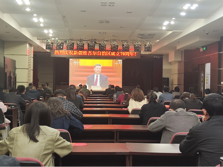 自治区民委组织党员干部集中收看自治区成立70周年庆祝大会实况