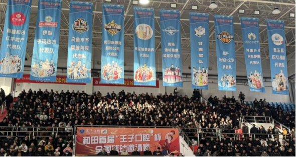1月10日晚,和田地区科技文化活动中心篮球馆内,首届“王子口腔”杯全国篮球邀请赛拉开战幕。每天第一场比赛前,全场观众自发肃立,注目五星红旗冉冉升起,齐声高唱国歌。首场比赛,青海“雪域雄鹰”队身着藏袍、和田队身着艾德莱斯纹样球衣并肩列队,生动诠释着“各民族在中华民族大家庭中像石榴籽一样紧紧抱在一起”。